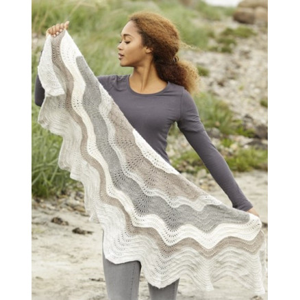 Blizzard by DROPS Design er et fint sjal, som er strikket i Drops Puna. Sjalet strikkes ovenfra og ned med bølgemønster og striber.