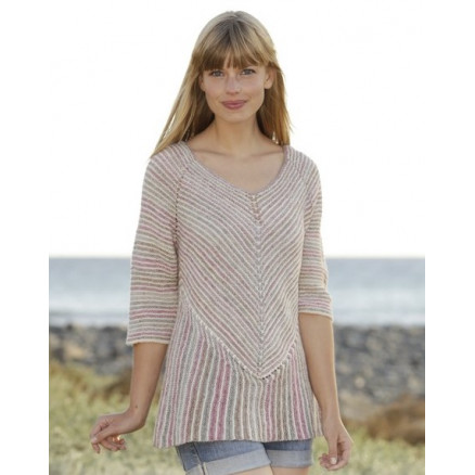 Crayons by DROPS Design er en sød vinkelstrikket bluse, som er strikket i Drops Fabel. Blusen strikket med retstrik, striber og dominoruder. Den fine bluse strikket ovenfra og ned.