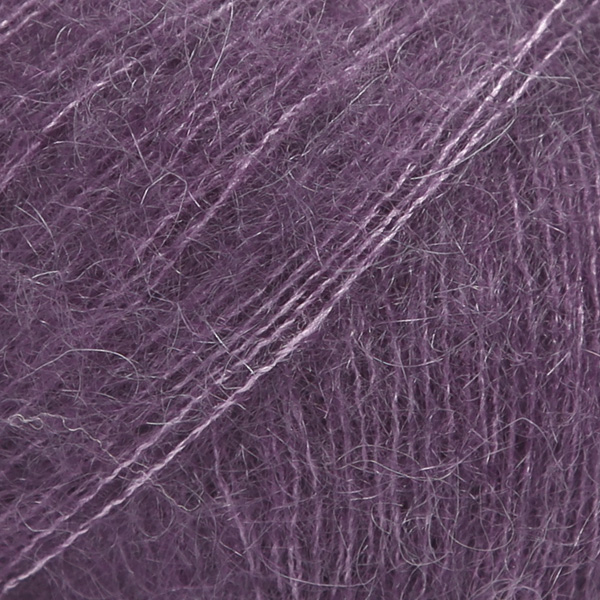 DROPS Kid-Silk Unicolor 16 Mørk Lilla, Garntype:Mohair, Indhold:75 % Mohair, 25 % Silke, Garngruppe:A (23 – 26 ), Vægt:25 gram, Længde:ca. 210 meter, Anbefalede Pinde/Nåle:3,5 mm, Strikkefasthed:23 m, Håndtering:Håndvask 30 / Tørres fladt, fra DROPS Desi