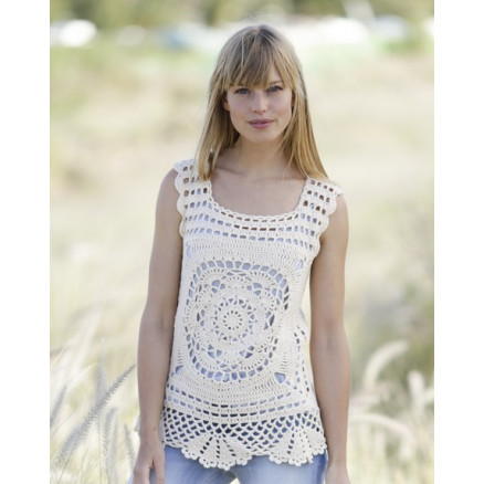 Elvira by DROPS Design er en sød og sommerlig top med stor rude. Den fine top er strikket i Drops Belle.