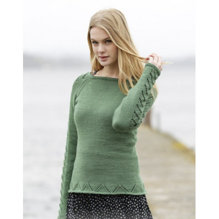 Green Forest by DROPS Design er en sød og enkel bluse strikket i det lækre Drops Cotton Merino. Trøjen kan både bruges i den kolde del af året og i sommerperioden som en overtrøje, når det er køligt. Blusen er med raglan og et enkelt hulmønster langs ærm