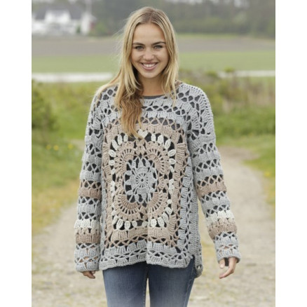 Harvest Love by DROPS Design er en fin bluse, som er hæklet i Drops Nepal. Blusen er hæklet med firkant og hulmønster.