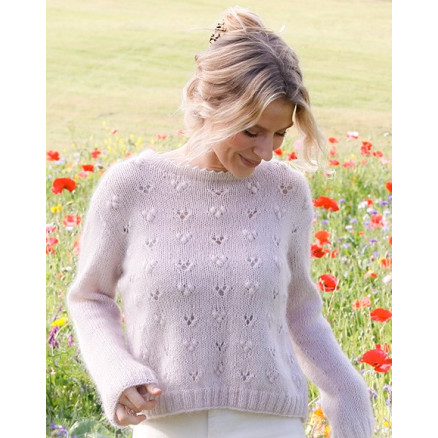 Heart Catcher by DROPS Design er en bluse som strikkes med en tråd Drops Flora og en tråd Drops Kid-Silk. Blusen strikkes nedenfra og op med hulmønster og bobler.Â
