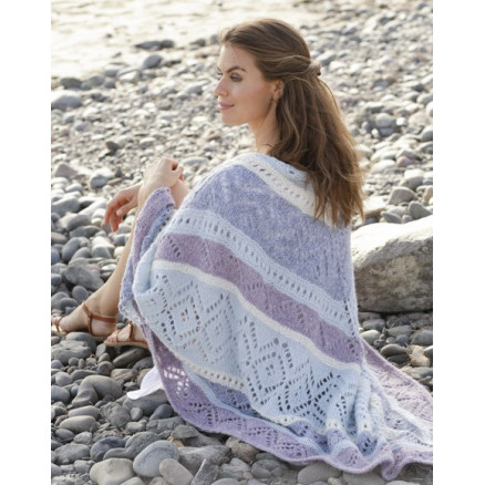 Liljesjal by DROPS Design er et smukt sjal strikket i DROPS Air. Sjalet strikkes ovenfra og ned i hulmønster og striber.