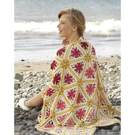 Spring Daze by DROPS Design er et fint tæppe med trekanter og frynser. Tæppet er hæklet i Drops Paris, som består af 100 % bomuld.
