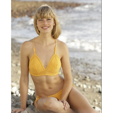 Tahiti by DROPS Design er en super fin hæklet bikini. Bikinien er hæklet i Drops Safran, som er 100 % egyptisk bomuld. Den fine bikini er hæklet med hulmønster og bindebånd.